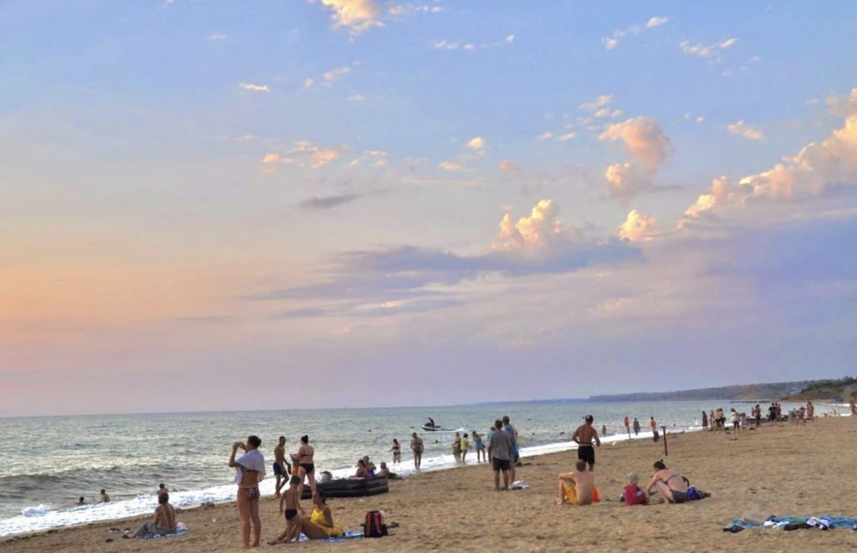 - Золотой песок: бархатистый, теплый, как пудра под пальцами — редкость для Крыма.