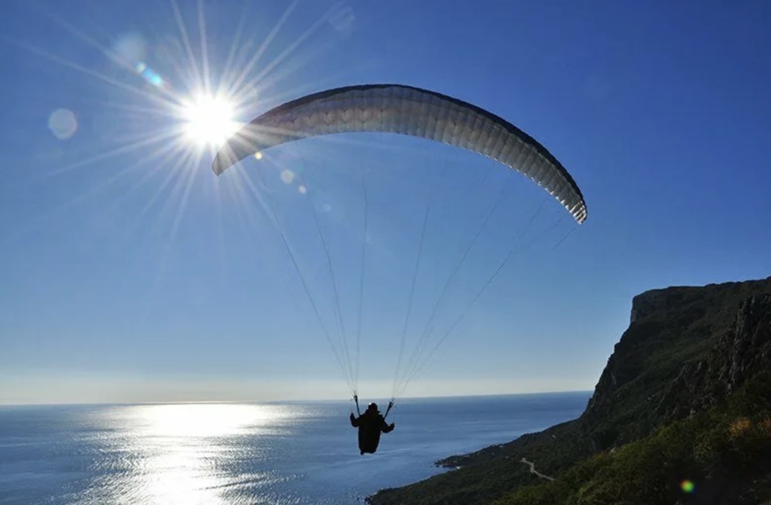 С Геракловского полуострова или Фиолента тандемный полёт 15 мин — 7000 руб., ветер поднимает на 500 м. Вид на бухты, корабли, горы — сердце в пятках при посадке на пляж. Сухой бассейн в зале для тренировок круглый год. Февраль — стабильный трамбовый ветер, идеально для фото с высоты.